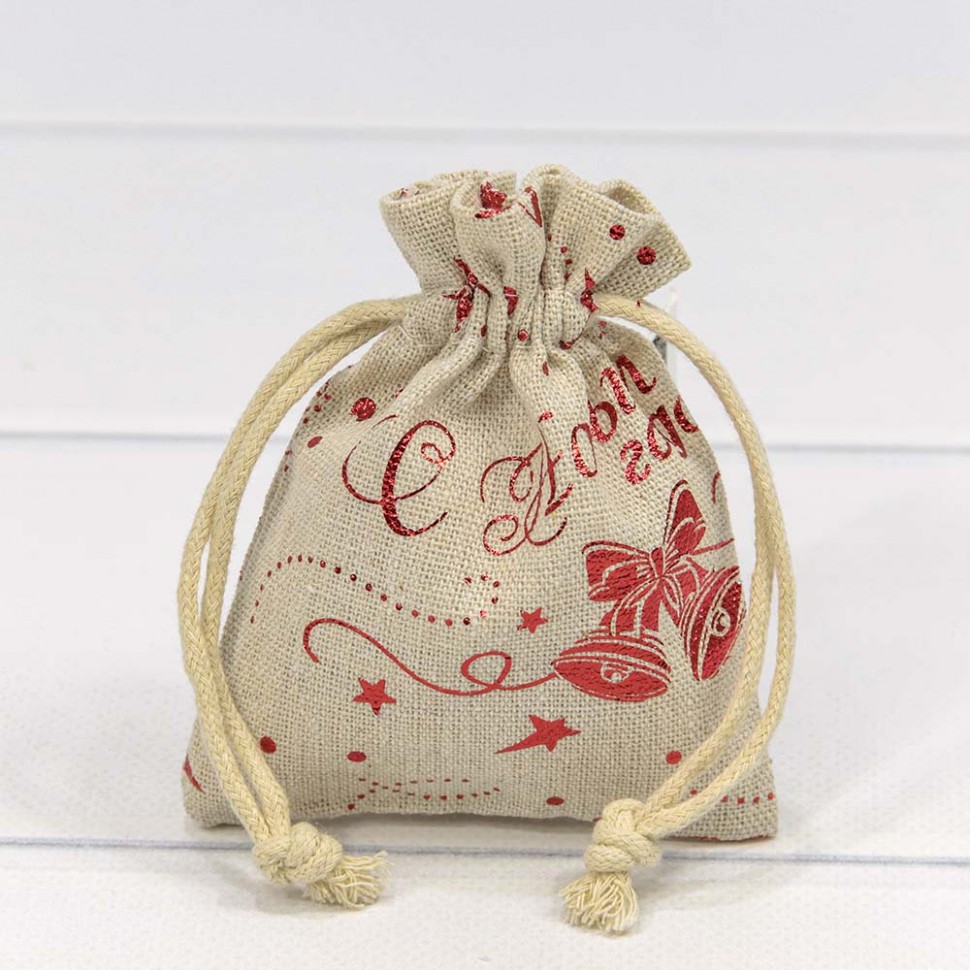 Краткое описание «Мешочки из искусственного льна 9*12 с рисунком С новым годом»