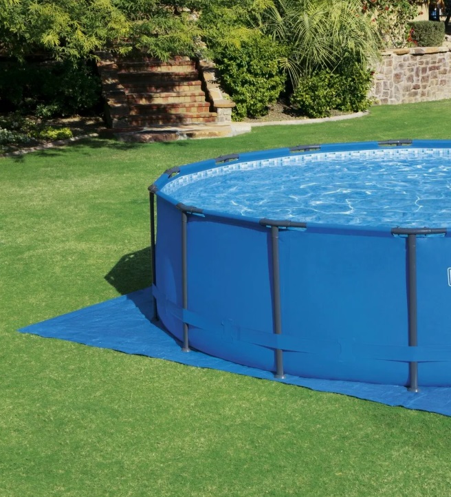 Тент для бассейна, сделанный из прочного ПВХ материала, предназначен для защиты бассейна от мусора, листьев, ультрафиолетовых лучей. За счет светоотражающих свойств полотна, осуществляется нагрев воды в ёмкости. Изделие крепится к каркасу бассейна с помощью веревок.