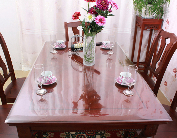 • Прозрачная силиконовая клеенка будет отлично смотреться на стеклянном столе. Прозрачные текстуры соединяться в одно целое, при этом мебель будет надежно защищена.