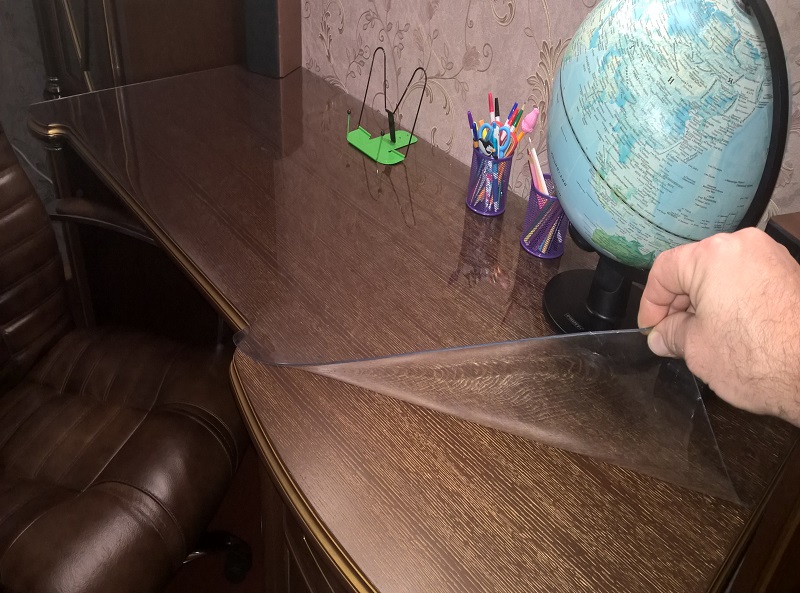 На протяжении всего периода эксплуатации стол подвергается большим нагрузкам, негативному влиянию окружающих факторов. Чтобы предотвратить быстрый износ столешницы, нужно покрыть ее прозрачной клеенкой. Данное изделие станет отличной защитой, оградит мебель от механических повреждений, кроме того, за счет ее прозрачности можно не скрывать дизайн обеденного стола. Его поверхность всегда будет гладкой, даже если прозрачная клеенка будет значительно повреждена.